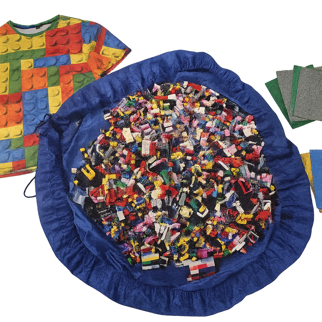 Je krijgt bij ons een kist vol met bouwsteentjes. In de bak zit een opbergzak, Deze zak is uit te vouwen tot speelkleed.